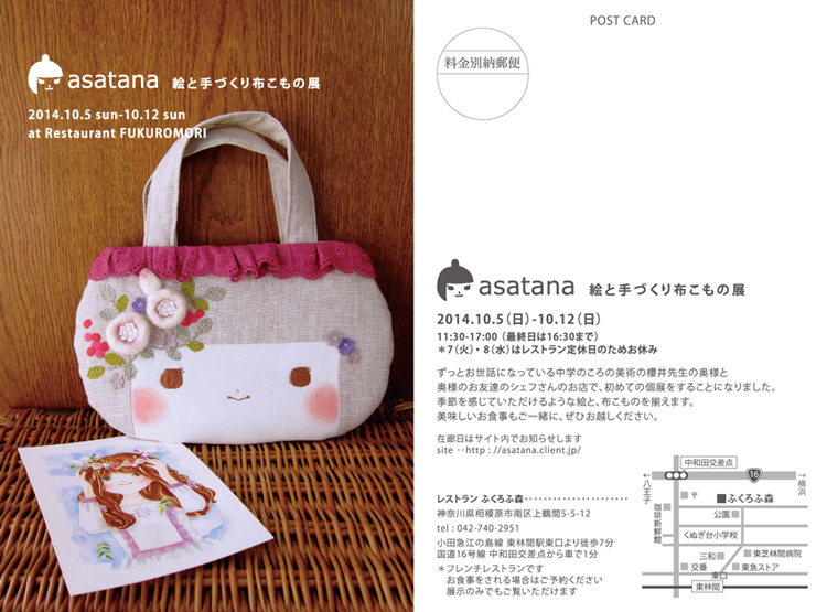 ●2014/10/05(日)-12(日) asatana 絵と手づくり布こもの展